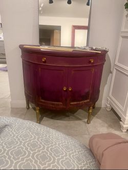 Elegant Burgundy & Gold Demi-Lune Cabinet – Solid Wood$215Las Vegas, NV