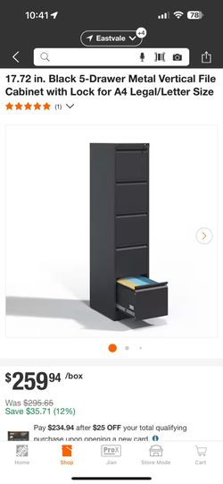 Black 5-Drawer Metal Vertical File Cabinet with Lock $100Corona, CA