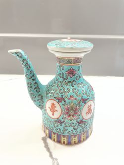 vintage Chinese Jingdezhen Mun Shou Famille Rose Longevity soy sauce jug or Wine Bottle $30Seattle, WA