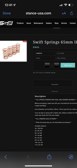 (4) Set Of 4 34k Swift Springs BRAND NEW 65mm ID$350Port St. Lucie, FL