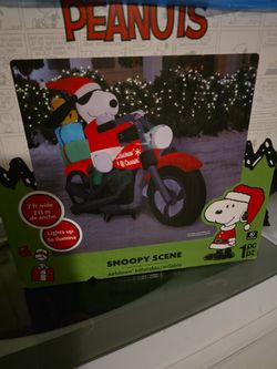 Peanuts Snoopy Christmas Inflatable (Airblown) 🎄🏍️good condition. Lights up and inflates nicely. Fun Snoopy riding a motorcycle with presents – perf$50Tamarac, FL