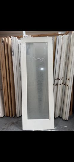 Interior pantry door 24x80” solid single glass frosted I have a standard size panty door measuring 28”x80 .door still has plastic covering glass to $140Burbank, CA