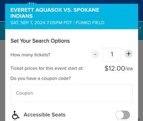 Aquasox Tickets Sep 7 GA Tickets$24Lake Stevens, WA