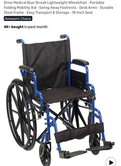 Medline Comfortable Folding Wheelchair with Swing-Back Desk-Length Arms and Swing-Away Footrests, 20”W x 16”D Seat$80San Antonio, TX