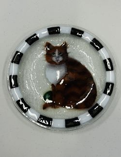 Vintage Phyllis Martin Fused Art Glass Decorative Brown Cat Plate 11”$25Clinton, IA