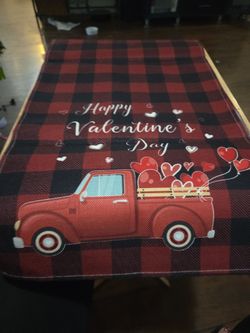 New Valentines Table Runner Happy Valentines Red Truck Heart Balloons Red And Black Plaid $10Hemet, CA