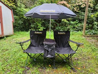 Dual Collapsible Suburu Camping Chairs with Center Cooler and Umbrella Shade$100Dunnellon, FL