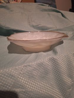 Milk Glass Short Pedistal Dish Gold Trim Grapes Leaf Pattern$12Stockbridge, GA