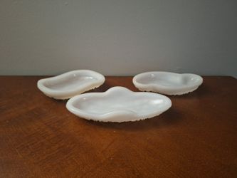 Vtg 1940s McKee Glass Co. Toltec White Milk Glass Relish/Trinket Dishes Set Of 3$30Fayetteville, GA