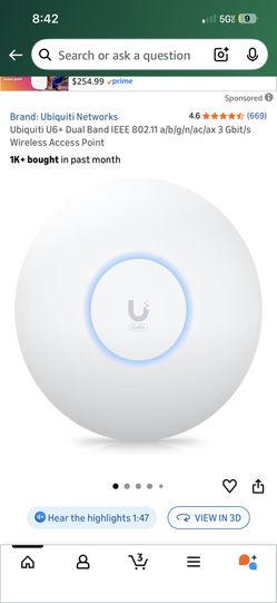 Ubiquiti U6+ Dual Band IEEE 802.11 a/b/g/n/ac/ax 3 Gbit/s Wireless Access Point$297Salida, CA