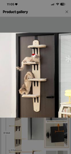 Door Hanging Cat Tree,Door Hanging Cat Shelf with Soft Mat,4-Levels Over The Door Cat Climber for Indoor Cats(Wooden-67.3" H X 23.2" L X 8.3" W)$65Greensboro, NC