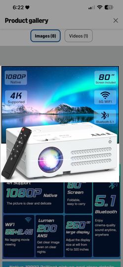 TMY Projector with WiFi and Bluetooth【80" screen included】Native 1080P Outdoor Projector, 4K Supported Portable Projector, Compatible with iOS/Android$60Greensboro, NC