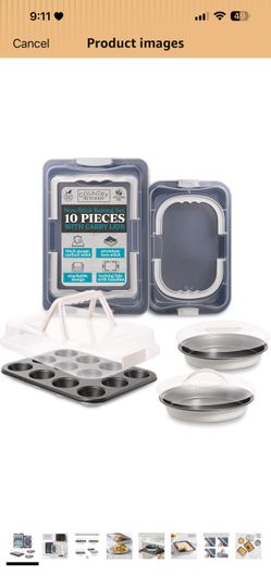 Country Kitchen Baking Pans Set - 10 Piece Non-Stick Cake Pans with Carry Lids for Easy Storage & Travel, Perfect for Parties - Stackable, Cream$50Greensboro, NC