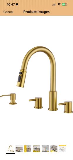 4 Hole Kitchen Faucet, Brushed Gold Kitchen Faucet with Soap Dispenser and Pull Down Sprayer 3 Modes Kitchen Sink Faucets, Stainless Steel High Arch K$50Greensboro, NC