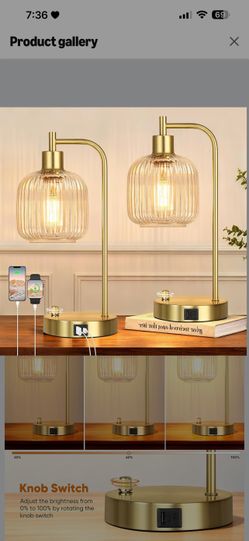 Industrial Table Lamp for Bedroom Set of 2, Clear Glass Beside Lamp with USB A&C Ports, Stepless Dimmable Gold Lamps, Nightstand Lamps for Living Room$60Greensboro, NC