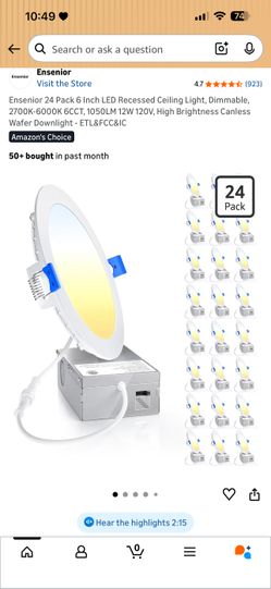 Ensenior 24 Pack 6 Inch LED Recessed Ceiling Light, Dimmable, 2700K-6000K 6CCT, 1050LM 12W 120V, High Brightness Canless Wafer Downlight - ETL&FCC&IC$95Greensboro, NC