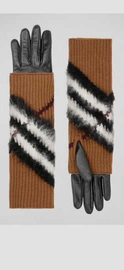 New Never Worn-2 Pc. Burberry Chevron Knit Blend Cashmere Arm Sleeve & Leather Gloves $450Redmond, WA