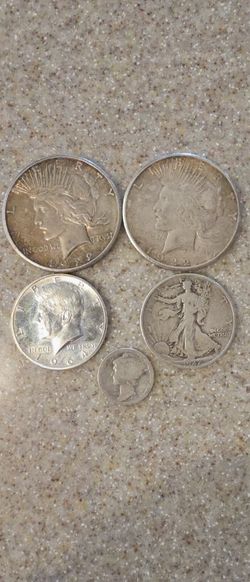 Two 1922 "S" Peace Dollars And One 1942 Walking Liberty One 1917 Mercury Dime Coins And One 1964 Kennedy Half Dollar All 90% Silver$265Apple Valley, CA