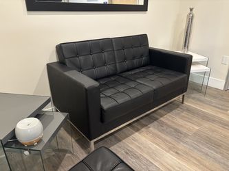 Modern Black Tufted Leather Loveseat – Mid Century Style – Great Condition$100Newport Beach, CA