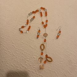 Boho Orange And Clear Beads Necklace And Earrings Set$35New York, NY