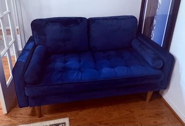 Mid-Century Velvet Navy loveseat $120Houston, TX