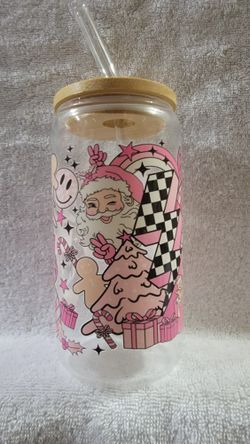 Christmas Design 16 0z Glass Cup With Lid And Straw.$28Portland, OR