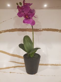 Beautiful Purple Orchid Plant Planter Black Pot Kitchen Home Decor Fabric Spa Flower $6Schererville, IN