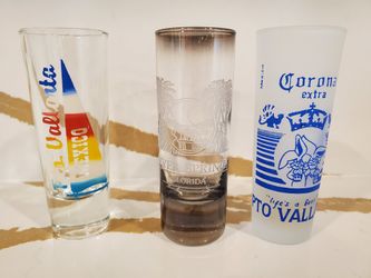 Lot of 3 Collectible Clear Shot Glasses Glass White Corona Extra Silver Springs Florida Mexico Logo $1Schererville, IN