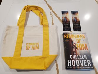 NEW Lot of Reminders of Him Book Colleen Hoover Yellow Tote Bag 2 Bookmarks Rare Collectible $5Schererville, IN