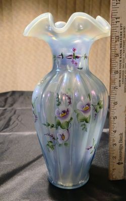 Fenton Misty Blue Floral Melon Vase dated 1997 - Holmdel NJ $194Holmdel, NJ