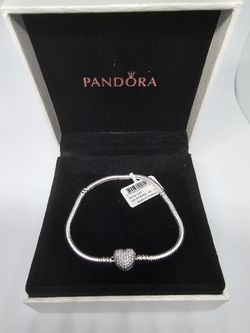 Pandora Moments Sparkling Heart Claps Snake Chain Charm Bracelet Size 7.5 In$59Orland Park, IL
