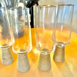 Christian Siriano Gold Rhinestone Champagne Flute Wine Glasses set 4pc $100Bellingham, WA