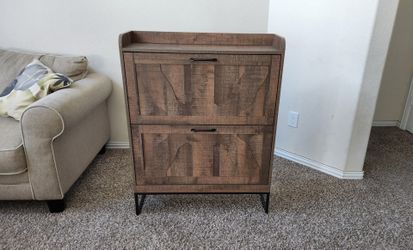 SoldGray Rustic Style Wooden and Metal Shoe Storage Cabinet/Shoe Organizer with 2 Flip Drawers and Shelf$60Katy, TX