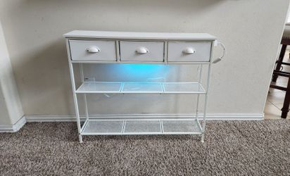 SoldWhite Metal and Wooden Console/Entry/Sofa Table with 3 Fabric Drawers, Shelves, Charging Station and LED Lights$50Katy, TX