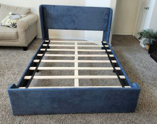 SoldFull Size Blue Modern Solid Pine Wood and Upholstered Bed Frame with Headboard, Footboard, Rails and Wood Slats For Kids. No Box Spring Needed$120Katy, TX