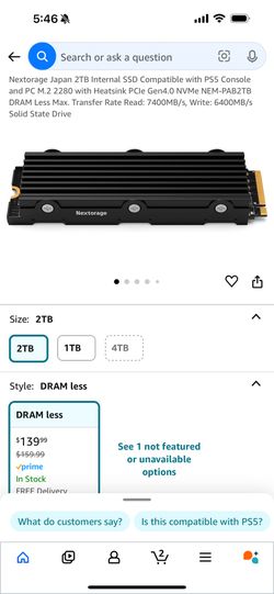 Ps5 Internal Memory 2 Terabytes $100Chula Vista, CA