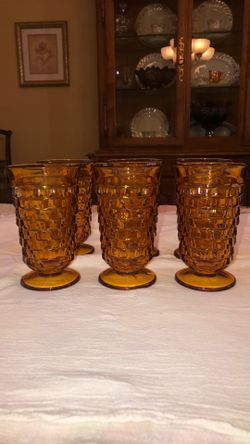 6 Vintage Amber Indiana Whitehall Cubist Tumblers / Drinking Glasses.. 12oz. 6” Tall. $30Chandler, AZ