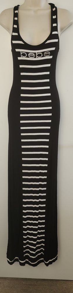 Black and White BEBE Sparkle Logo Maxi Dress Tank Style With Double Side Slits Size: L $30Oakland Park, FL