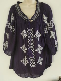 Navy Blue Embroidered Boho Tunic Top |Large $15Fort Lauderdale, FL