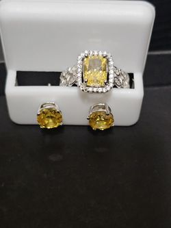 size 7 yellow sapphire ring and maching studs 925 sterling silver lab created$80Grand Prairie, TX