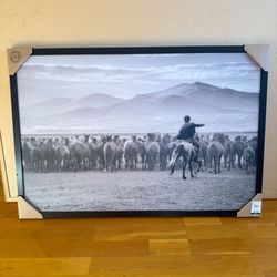 New Black and White Cowboy with Horses and Mountain Large Framed Wall Art Size 37x 26$20Hernando Beach, FL