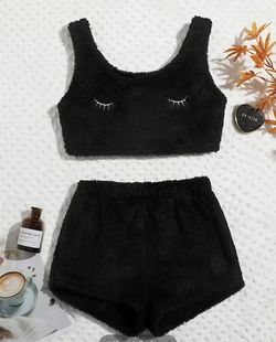 Fluffy Comfortable Pajamas Set, Crop Tank Sleeveless Top & Comfortable Shorts Loungewear Set For Valentine's Gifts, Women's Loungewear & Sleepwear$15Miramar, FL