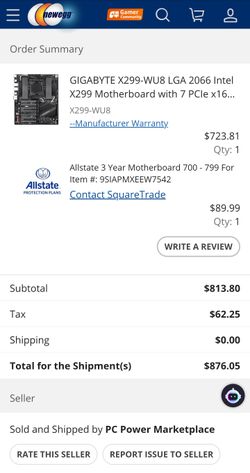 Gigabyte X299 WU8 Motherboard + Intel Core i7-9800X Cpu$650Phoenix, AZ