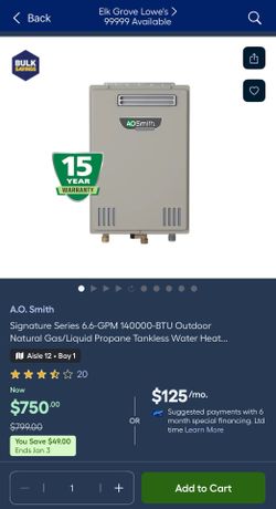 New Signature Series Outdoor Natural Gas/Liquid Propane Tankless Water Heater $650Sacramento, CA