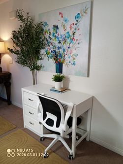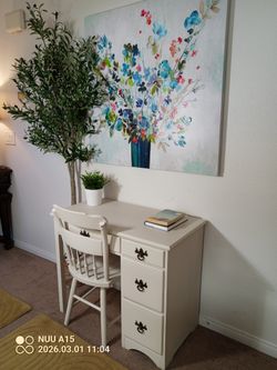 Small clean painted white desk and chair. A charming set.$95Las Vegas, NV