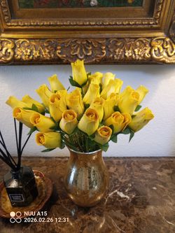 Yellow wood like roses in gold vase$25Las Vegas, NV