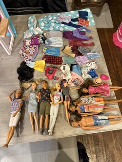 9 Barbie Dolls, Clothing, baby with stroller and 2 chairs $65Frisco, TX