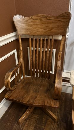 Mid 20th century vintage golden oak swivel office chair$175Frisco, TX