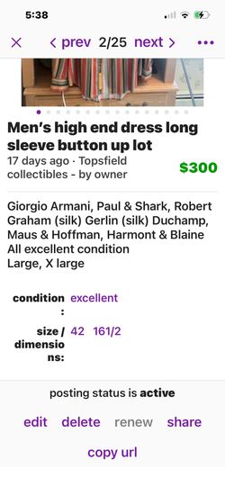 Men’s high end button up shirts$300West Newbury, MA
