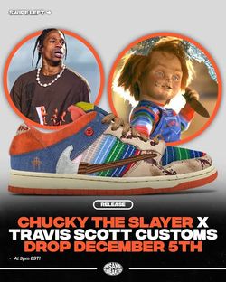Travis Scott X Cold Sins Chucky The Slayer Nike SB’s$250San Diego, CA